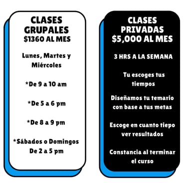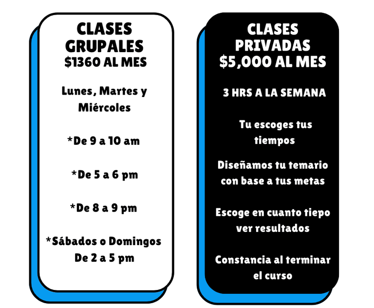 Horarios flexibles que se adaptan a tu ritmo de vida, para que aprendas sin complicaciones. Además, cada profesor da un seguimiento personalizado a tus avances, asegurando que progreses de manera constante y efectiva.
